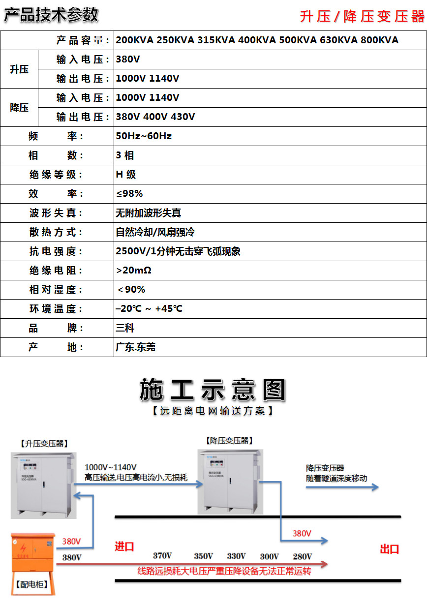 主要產品:隧道施工升壓變壓器、隧道施工升壓器、三相升壓變壓器、三相降壓變壓器、三相380轉1140V變壓器、三相380V變660V變壓器。